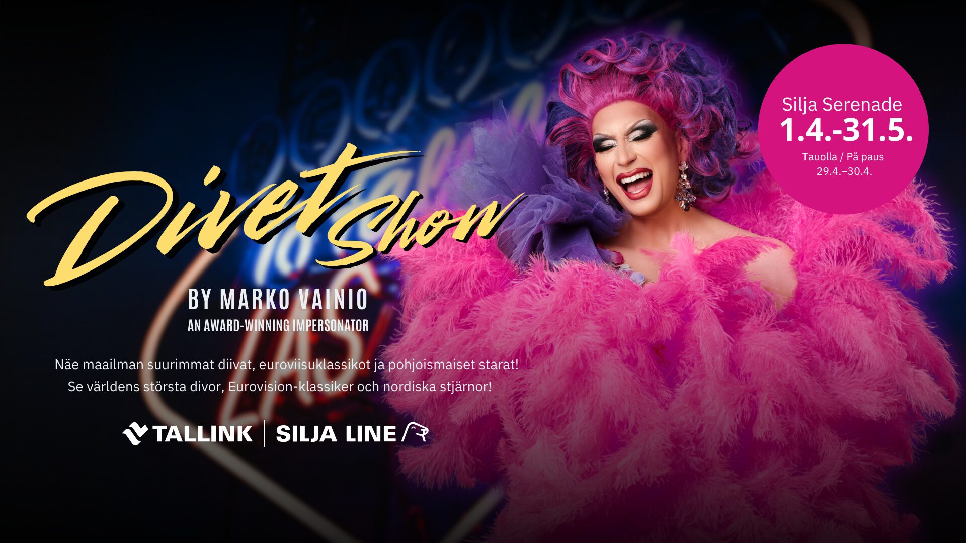Experience the most captivating and dazzling show of the year – the fabulous Divet Show by Marko Vainio! This is a fast-paced look-alike show with up to 20 international stars – performed by solely one man!